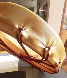 Du baust in Begleitung von mir und meiner Freundin Barbara an einem Tag eine schamanische Heiltrommel. Gefertigt aus einem Holzreif, bespannt mit Ziegenhaut und geschnürt mit einem farbigen, unverwüstlichen Seil.