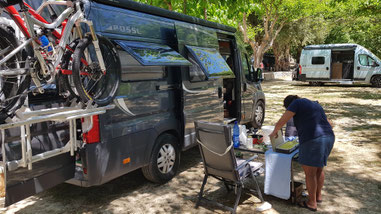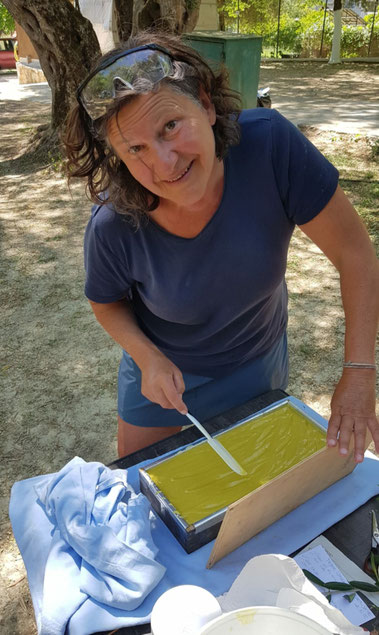 Hier die Bider auf der linken Seite stammen von unserem Urlaub in Griechenland 2022. Mein Seifenwerkzeug war mit im Gepäck und so entstand am Campingplatz von Parga diese wunderbare 80%ige Olivenölseife. Glitzerndes Salzwasser vom Strand und Bio-Ölivenöl von der Insel Lefkada, ohne Duft, ohne Farbe! PUR sozusagen!